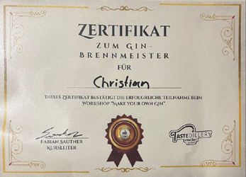 etwa einen halben Liter seines eigenen, trinkfertigen Gin´s